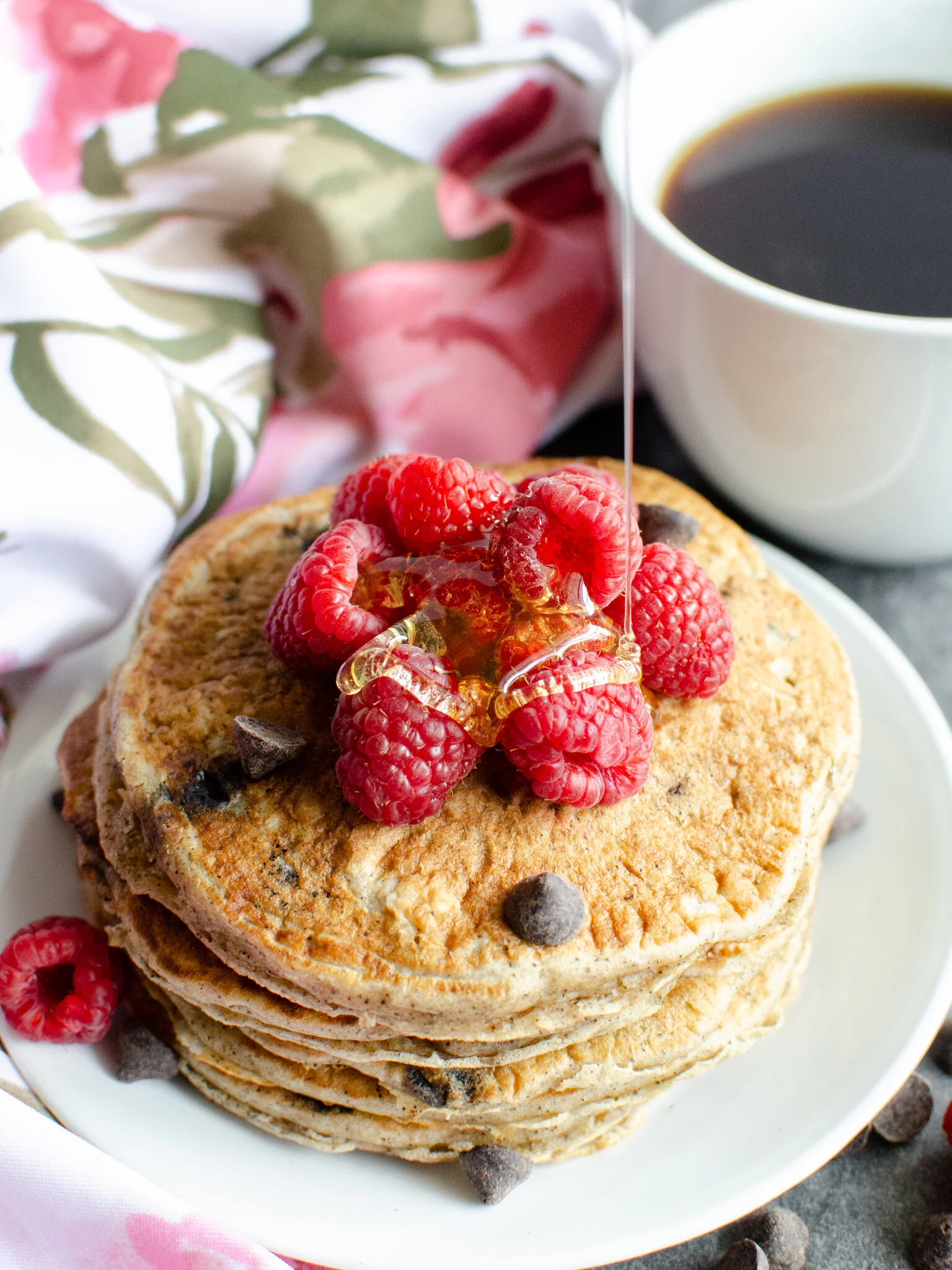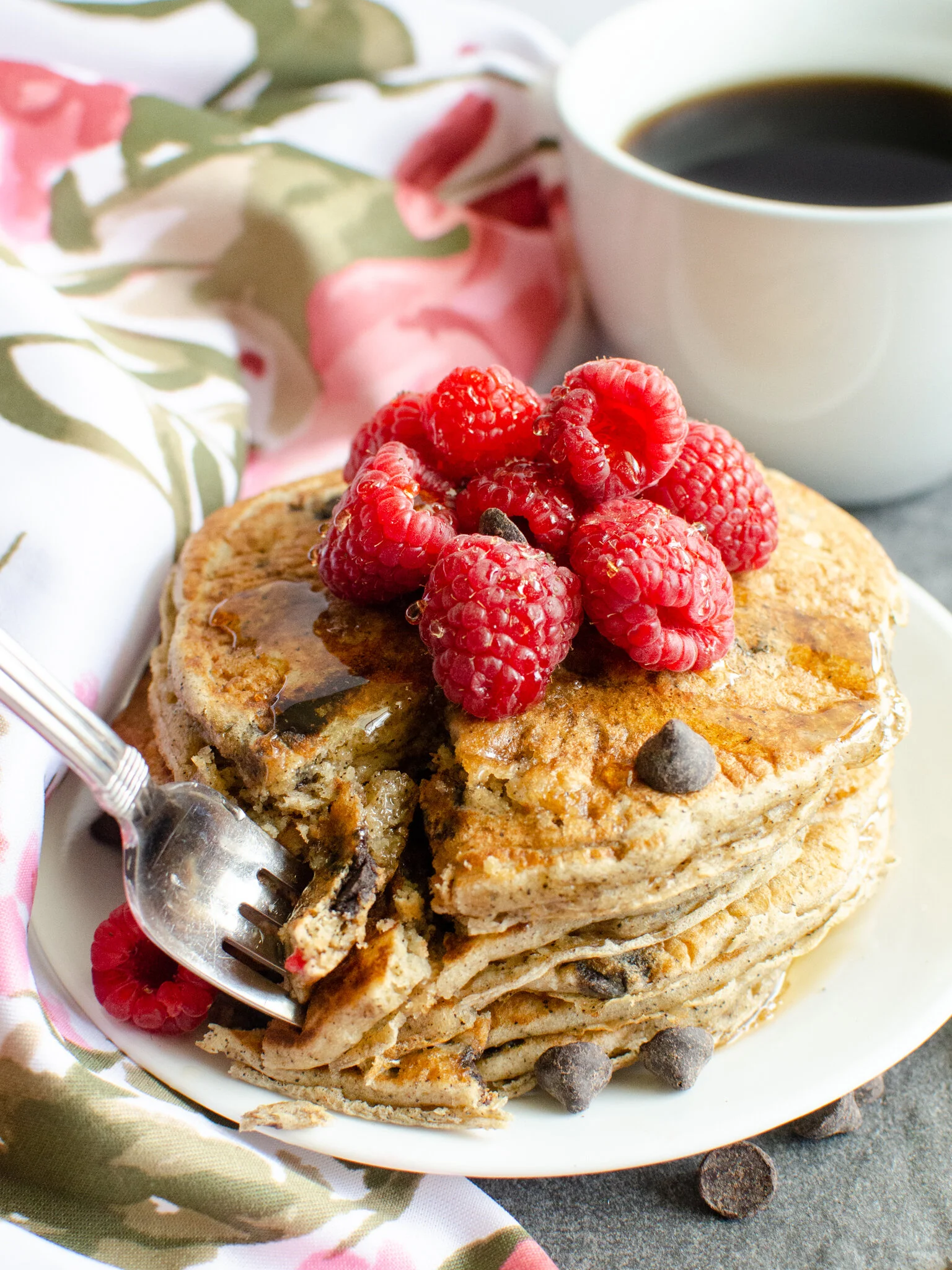 Ah, who doesn’t love coffee and pancakes in the morning? Combine the two and get these crispy buttermilk pancakes full of melty espresso chips… with just a hint of espresso powder. I like an extra boost in the morning!