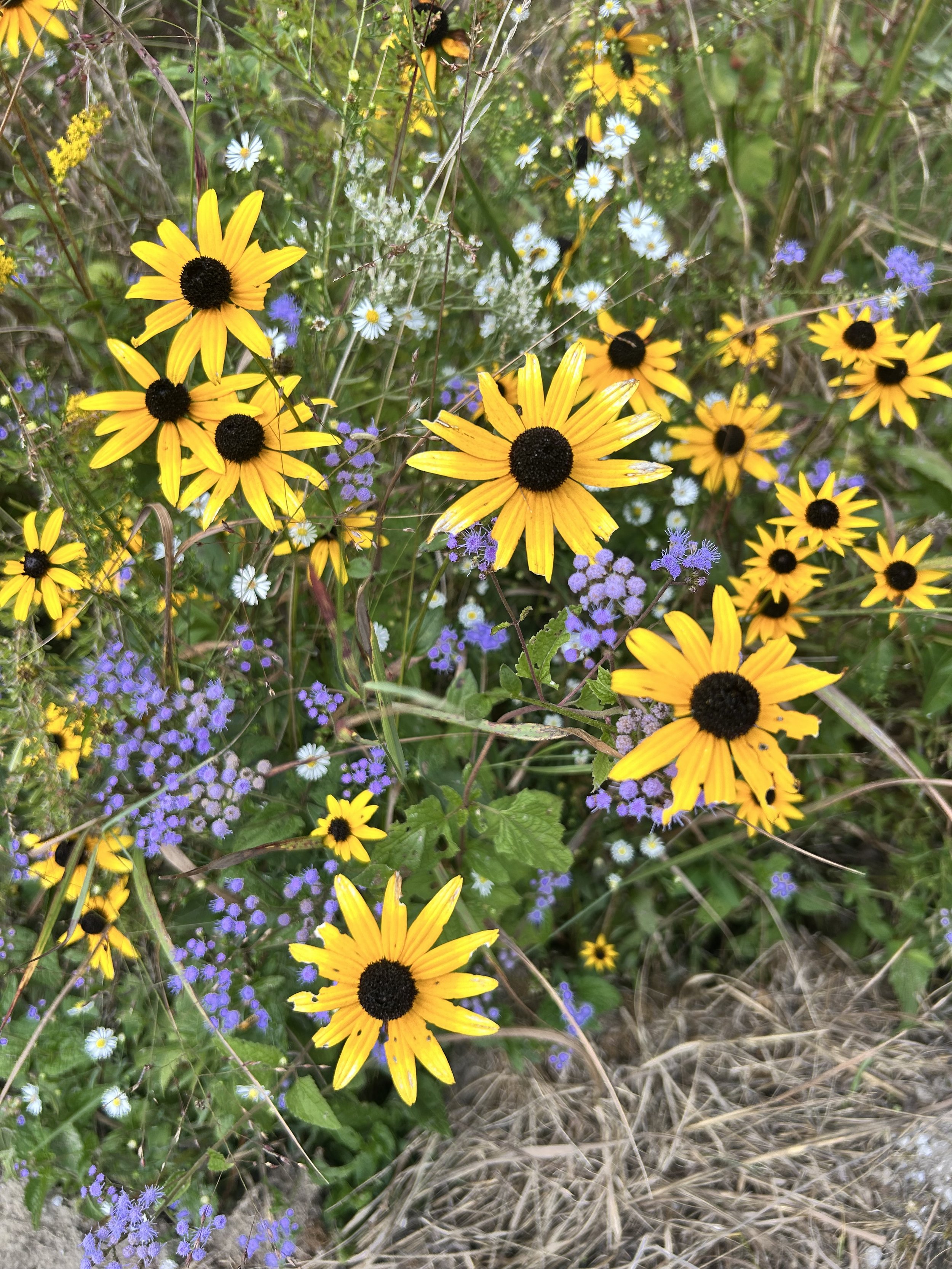 Above: 1) black-eyed susan 2) field thistle 3) late-flowering goldenaster 4) Canada goldenrod