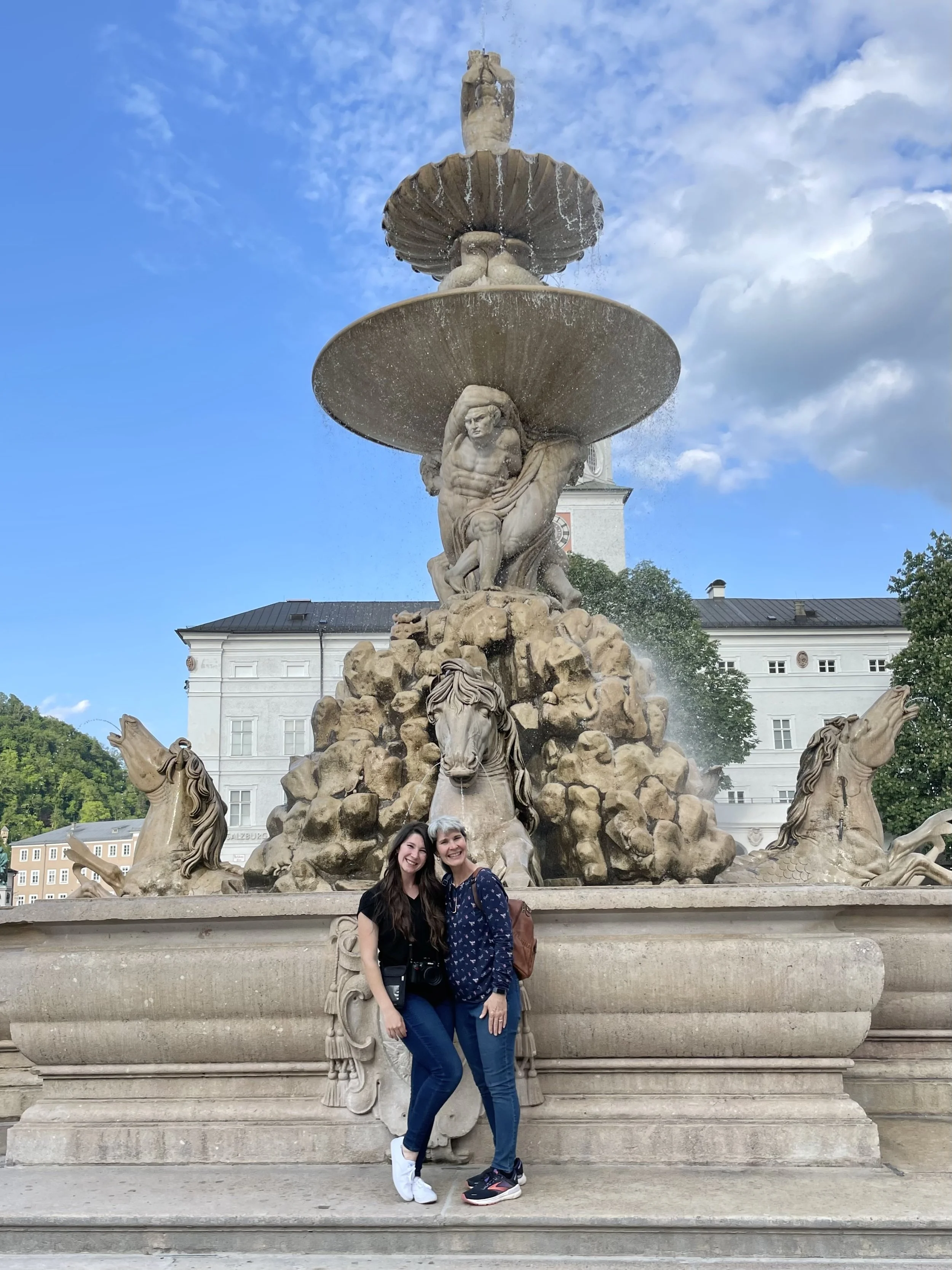 My mom and me in front of Residence Fountain. In The Sound of Music, Maria and the children sing around this fountain.