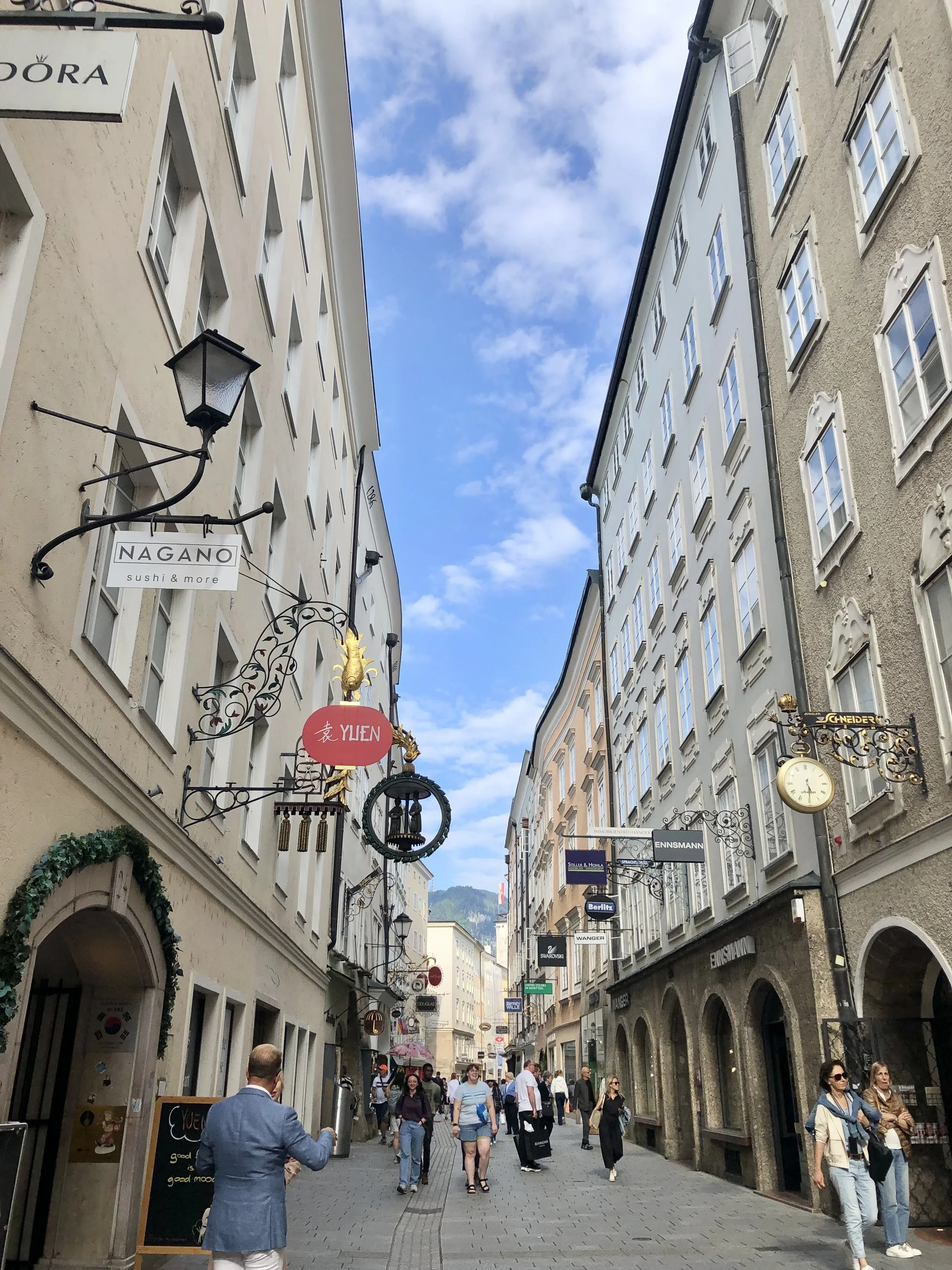 Walking down Getreidegasse on our way back to the train station