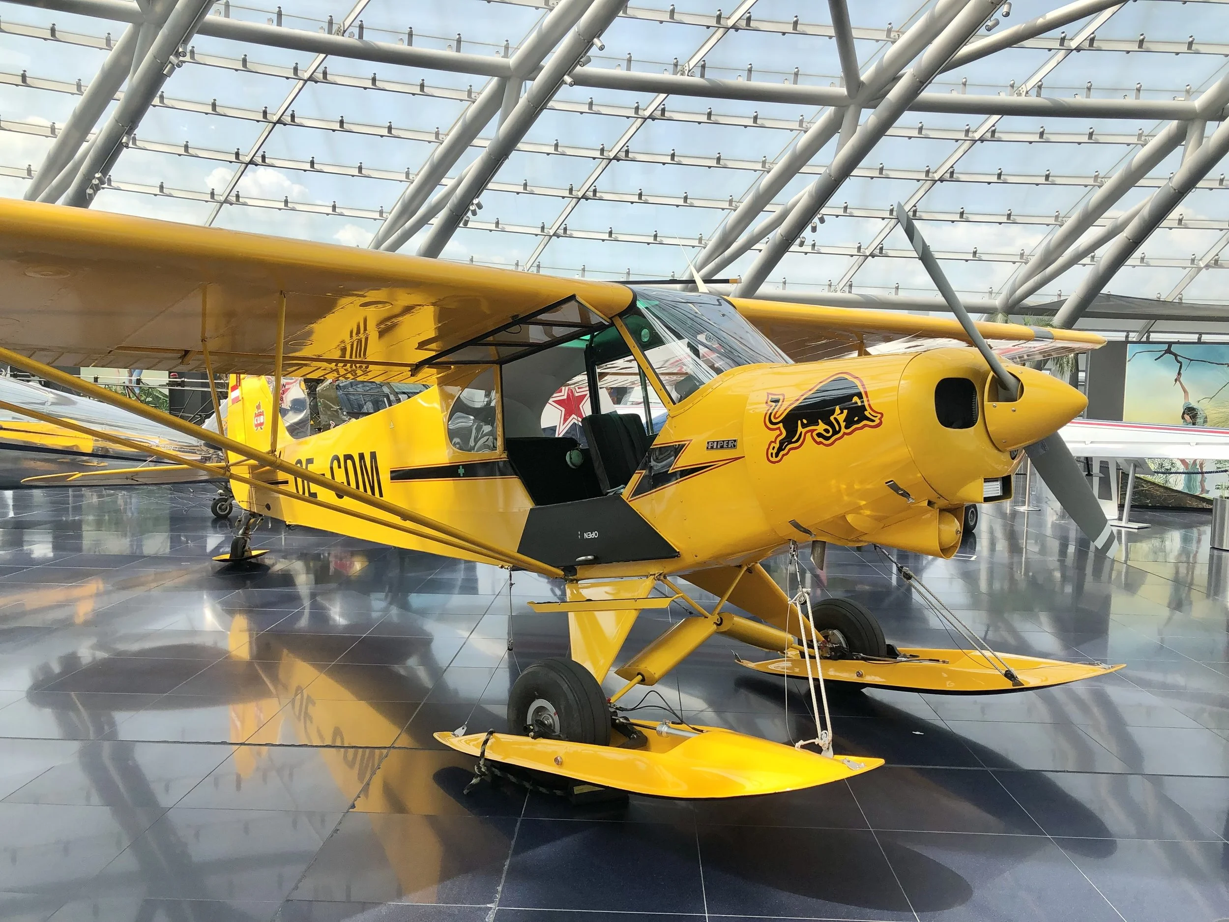 Piper Super Cub with snow skis at Red Bull Hangar-7 in Salzburg, Austria
