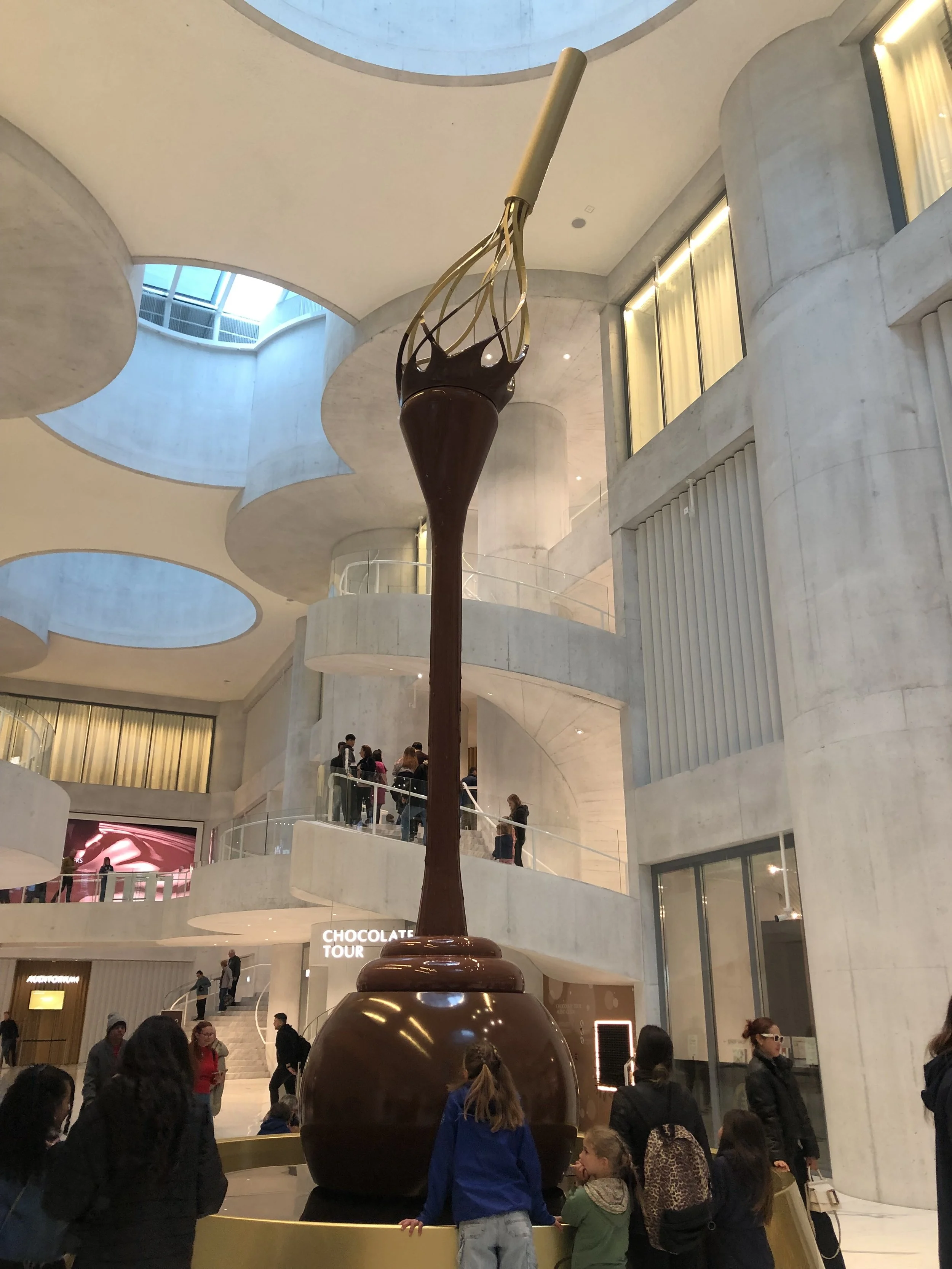 As soon as we stepped foot inside the museum, the warm, delectable scent of chocolate filled the air. A thirty-foot chocolate fountain rose from the center of the room with a buzz of children and adults surrounding it. I felt like I was in Willy Wonka’s factory!