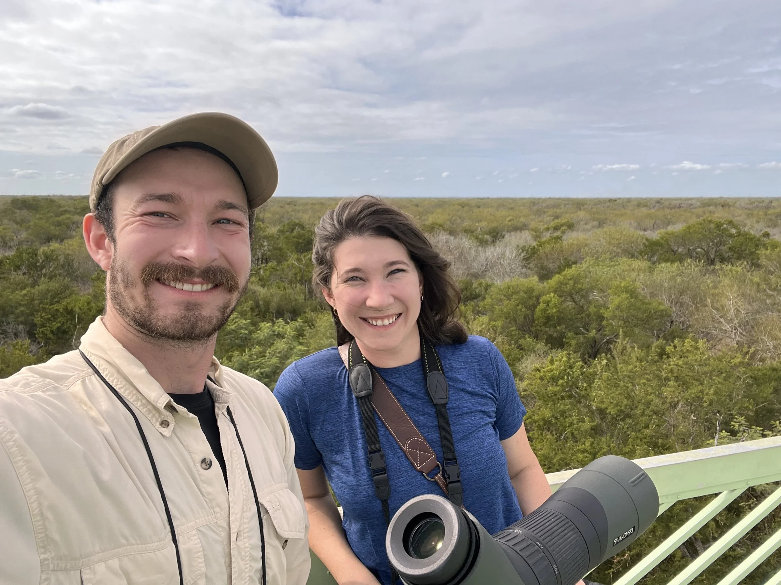 Watching gray hawks from an observation tower at Santa Ana National Wildlife Refuge