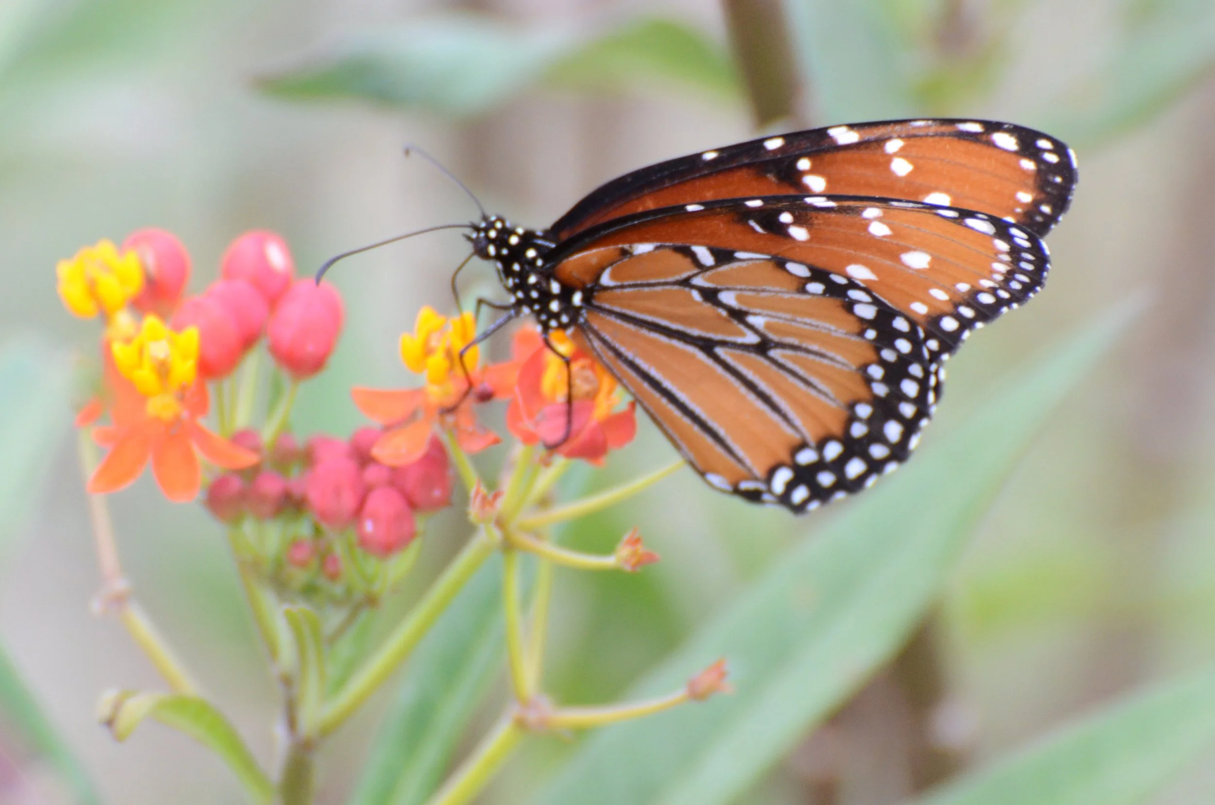 Despite the cloudy skies, the butterflies were quite active. The most notable butterfly we saw was the red rim, a rarely-seen species of brush-footed butterfly native to the Lower Rio Grande Valley. Pictured below is a queen, which is in the same genus as the monarch.