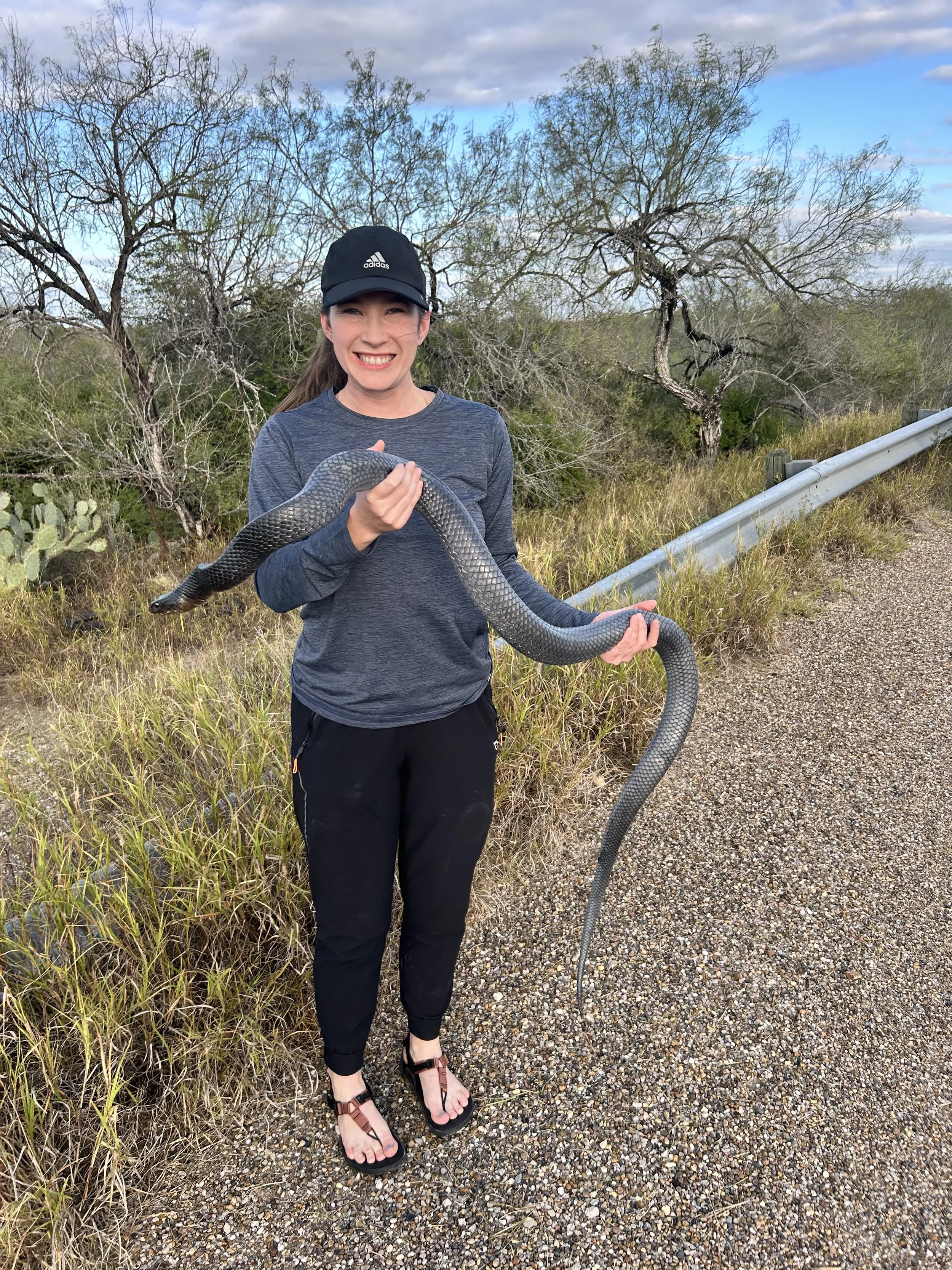 Me holding a non-venomous Texas indigo snake (Drymarchon melanurus erebennus)