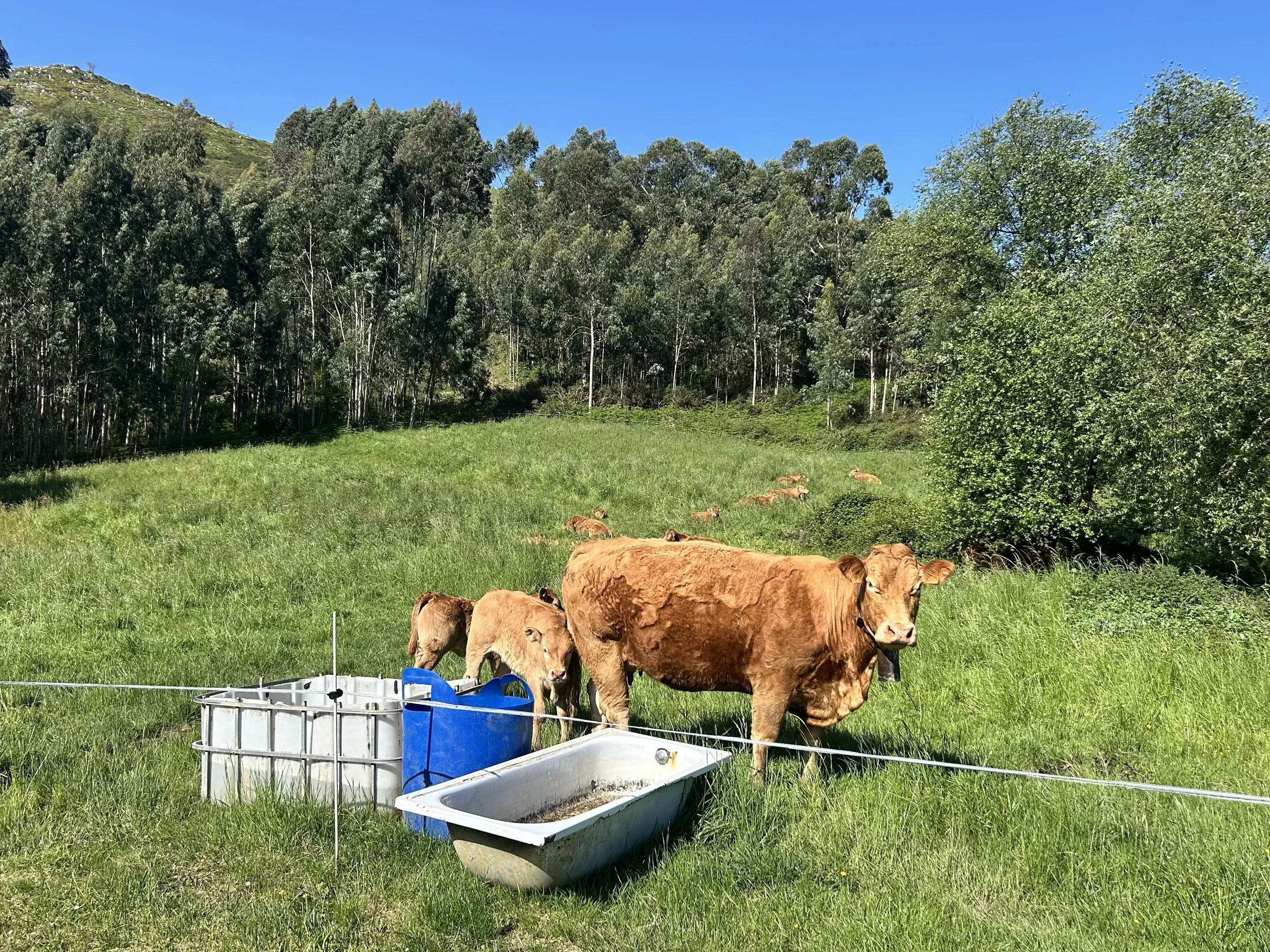 Cows in Liendo. It was common to see old bathtubs used as water troughs.