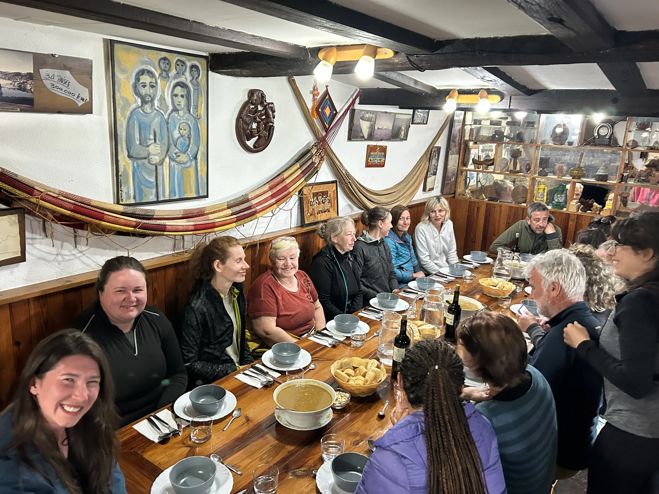The pilgrim dinner was a feast for the soul as well as the body. I learned there were 86 guests and 27 nationalities represented that night. I was the only American at my table. To my right was a girl named Maelyn from Denmark, who is blind. To my left was Jana from Czechia, whom I met on my birthday. Jana asked me my reason for walking the Camino, so I took a breath and told her. Up until this point I had met and told no one hiking for spiritual reasons. However, in this lovely, hospitable, Christ-centered place, it seemed like the most ordinary and natural thing to say.