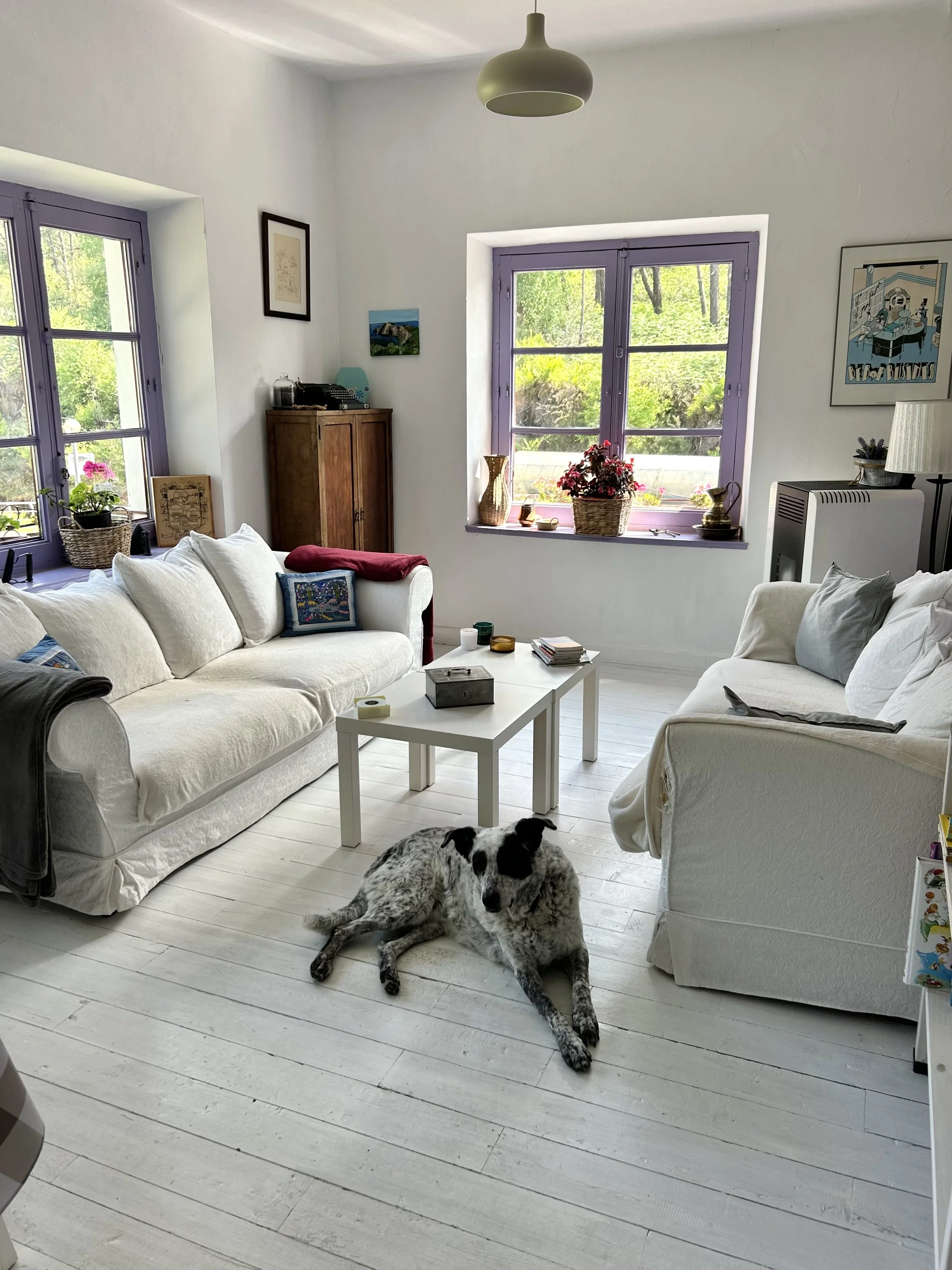 While the laundry was drying on the line, I walked barefoot through the fresh grass and played with the dog, Audrey. The afternoon was still and clear, as if spring had tasted a cool draught of fall. Audrey responded to my energy with leaps and bounds, darting across the grass and coming to a sliding stop in front of me like a quarter horse.