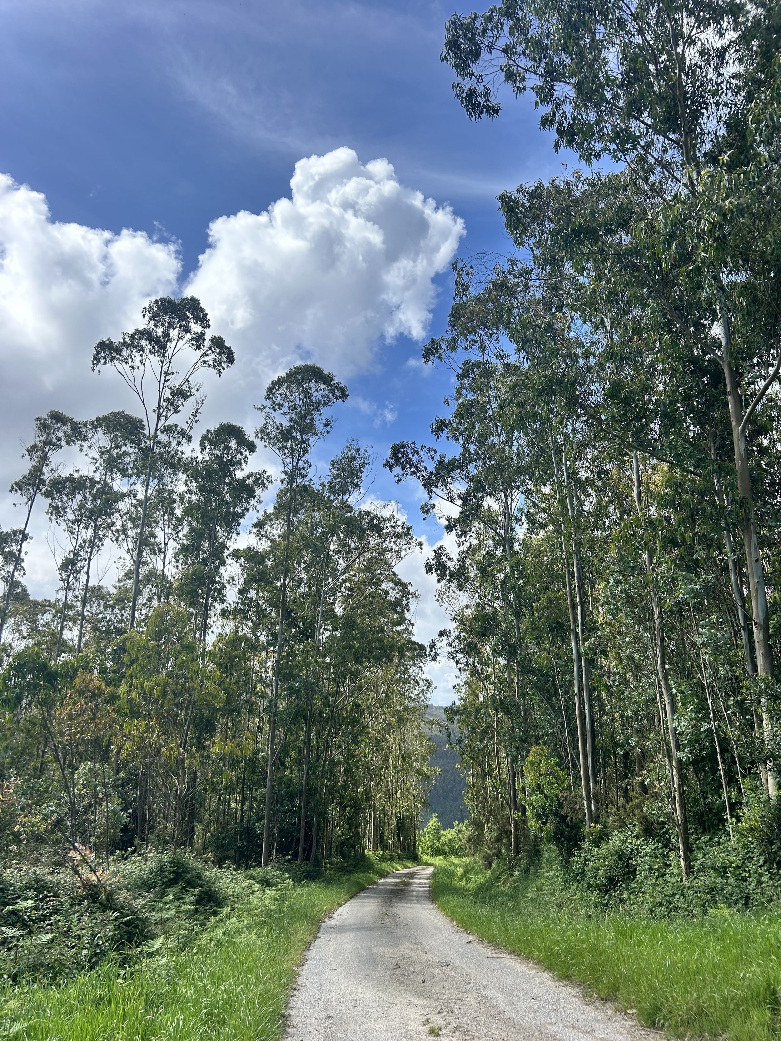 The second half of the day was over rolling fields and through planted eucalyptus forests.