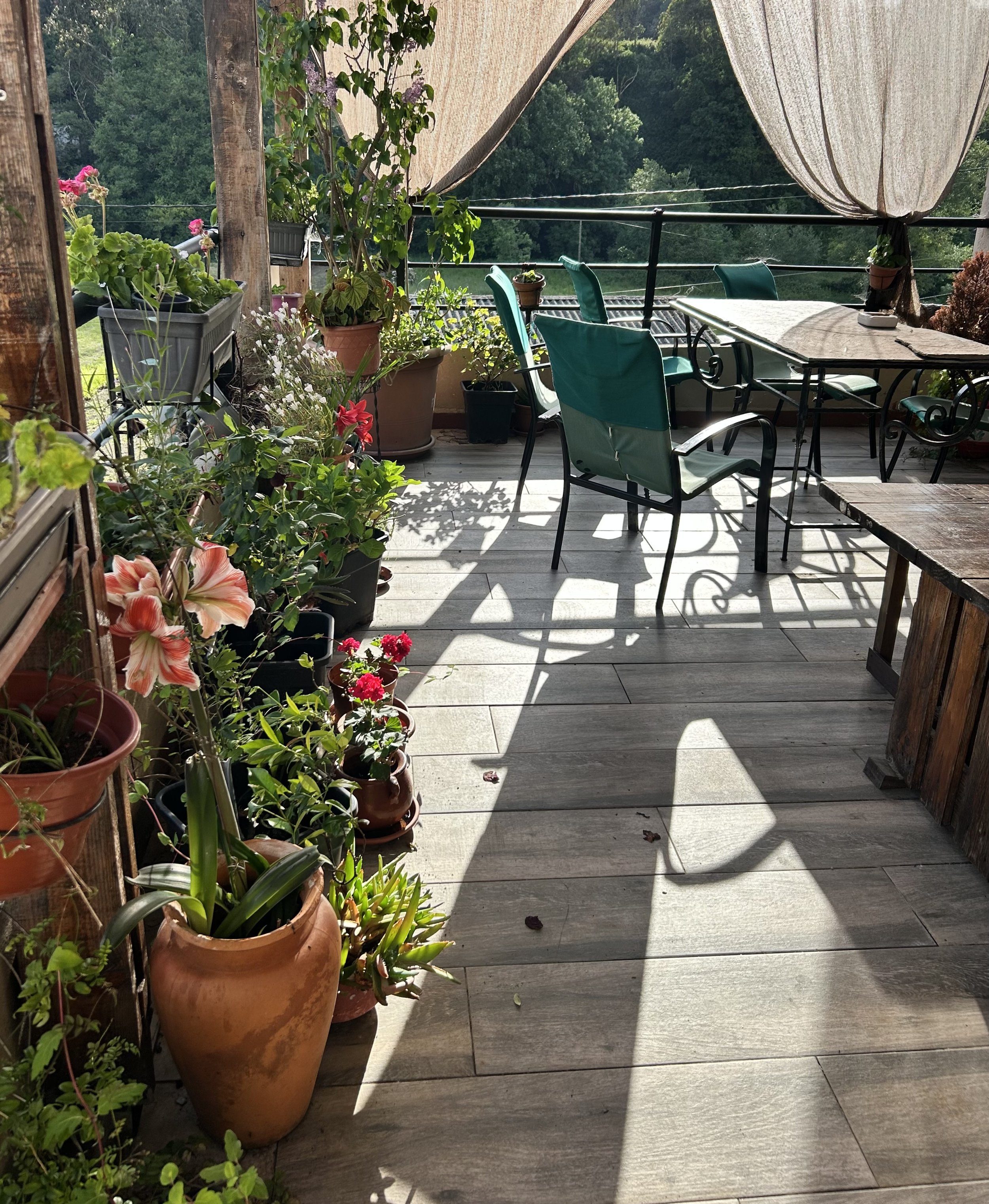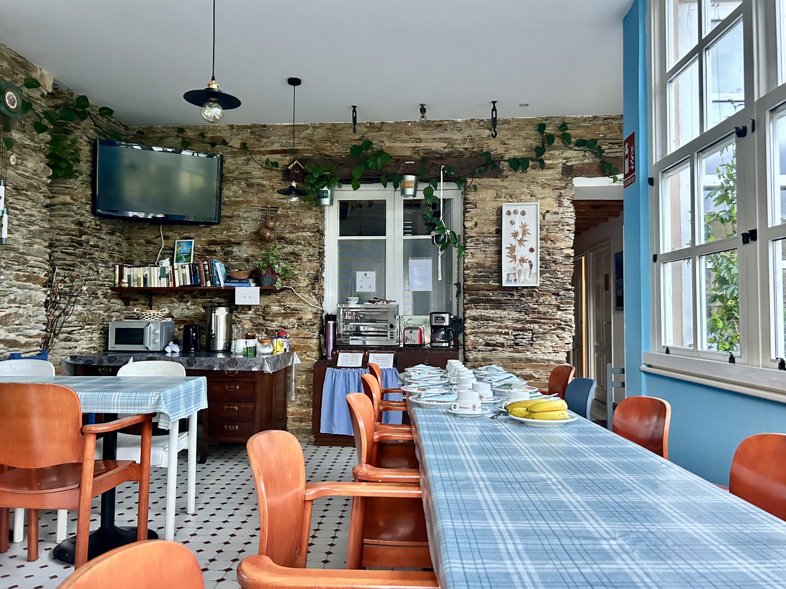 In the evening I sat outside on the western-facing patio and talked to Edina, whom I had met that morning on the road from Ribadeo. She told me about one of her favorite Camino books, and inevitably our conversation drifted to the woes of blisters and how to deal with them. A guy from Brazil told us that the best way of treating blisters was by draining them with a needle and thread. Cool.