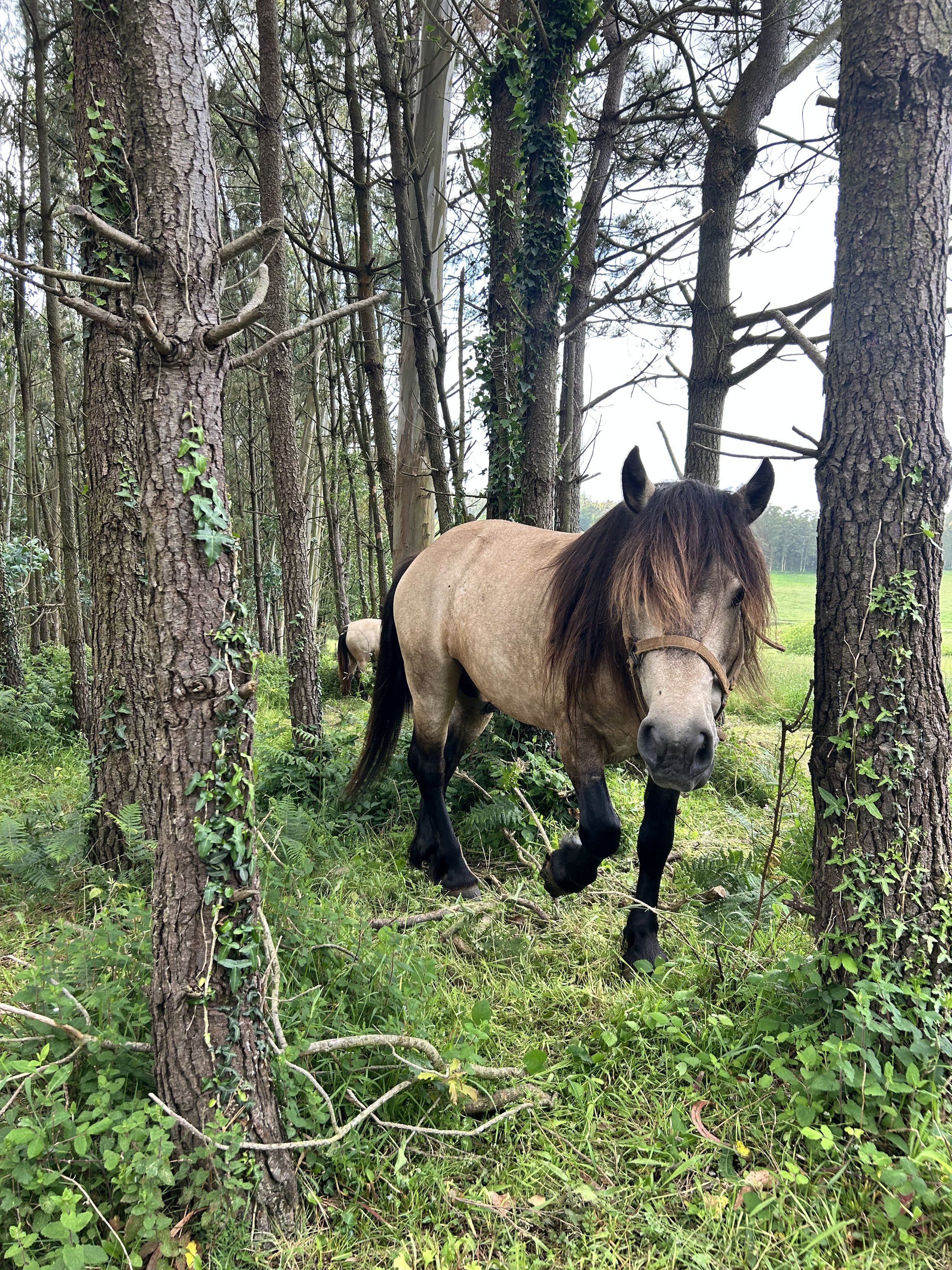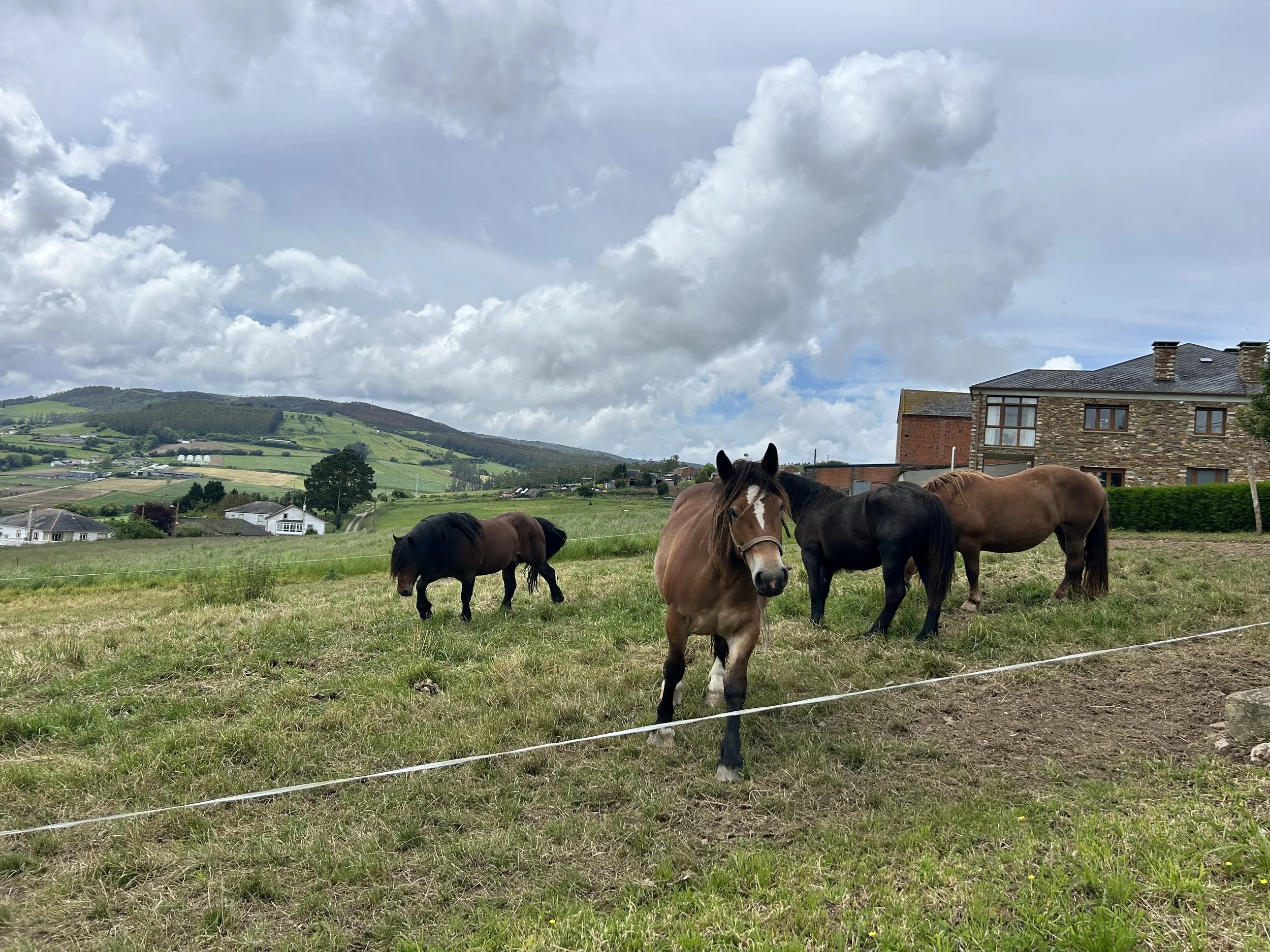 Before Villamartín Grande, the dipped into a shallow valley before climbing steeply to the two pueblos at the top. I went off the Camino a few hundred meters to see these curious horses.