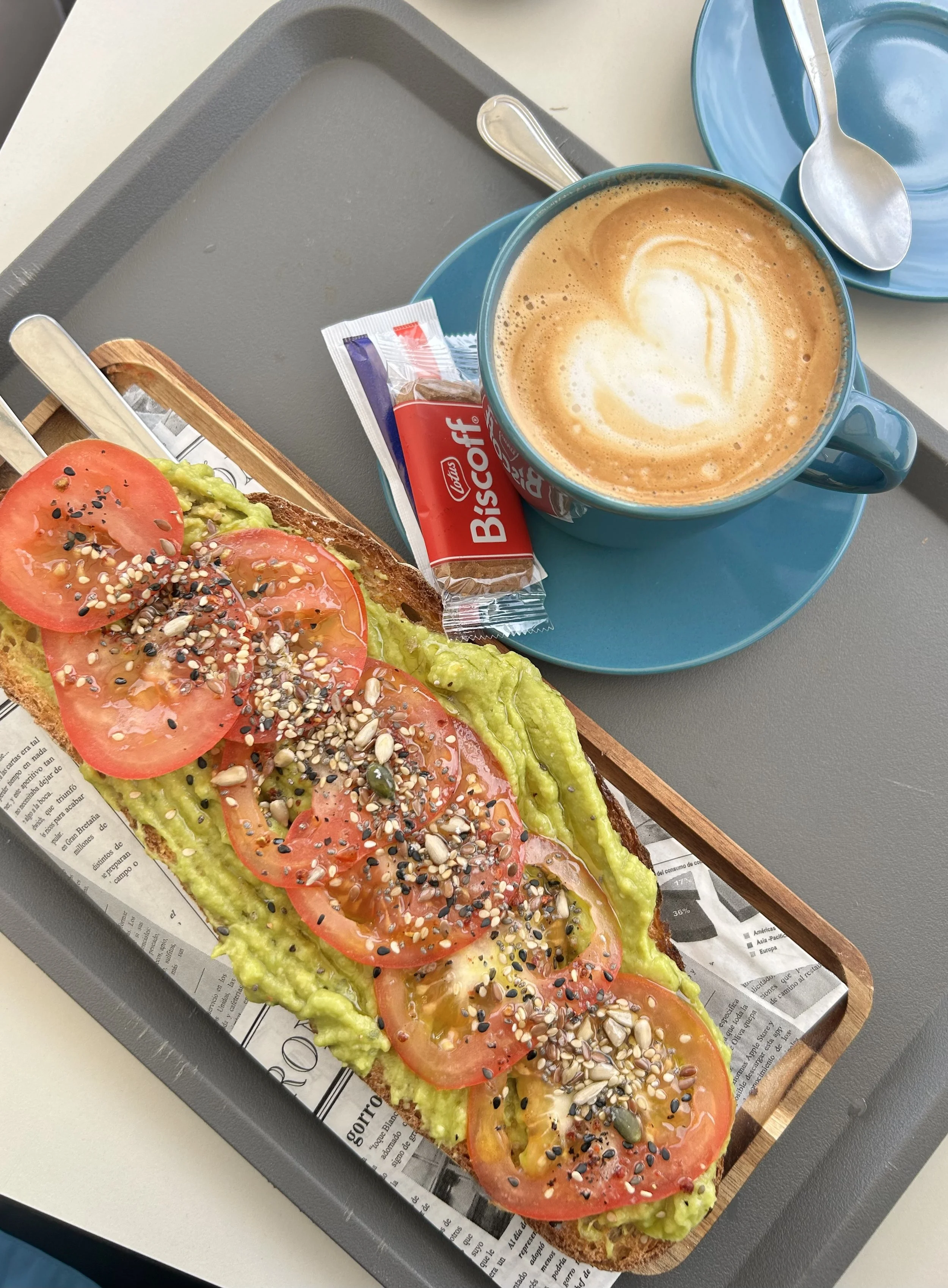 Those words were music to my ears! Sure enough, just around the corner I spotted backpacks and pilgrims out sunning themselves on the grass of a welcoming café. I had a tostada de aguacate for lunch as usual.