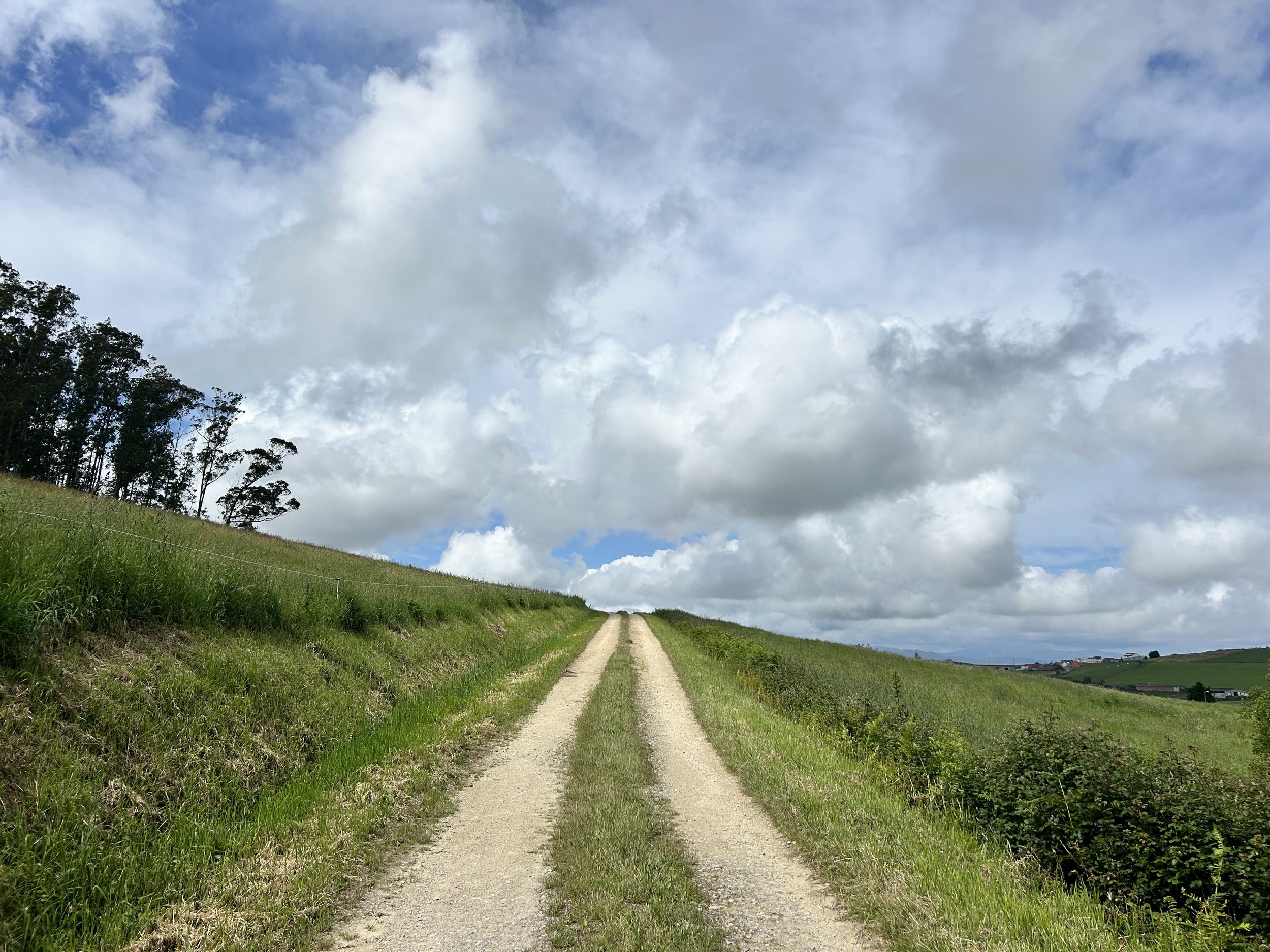 As I cut across the field, the Camino and the clouds converged at the one-perspective vanishing point on the horizon. Ideas, dreams, and plans began to flood my mind, so I used the voice recorder on my phone to catch them all.