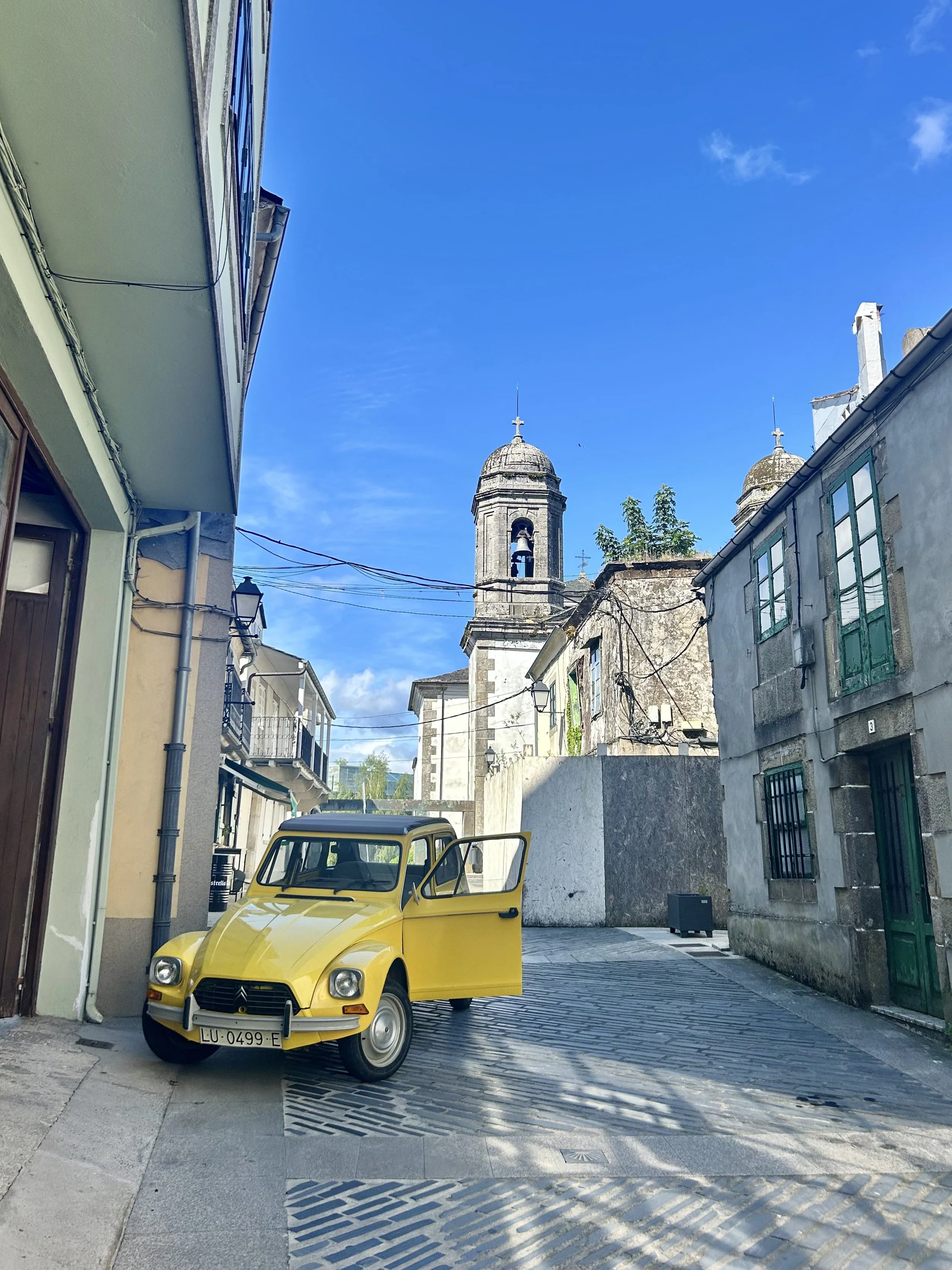 Next I went to EBOS Obradoiro Doce—an elegant, high-end sort of pastelería. The initial reason I stopped there was because I was attracted to the round lettering of the sign, but as soon as I walked in, I was enamored. ✨ All sorts of delectable cakes, breads, and pastries sat behind the crystal glass, each one delicately prepared. I had a San Marcos torta—A traditional Spanish cake made of Genoese sponge cake, layers of whipped cocoa and whipped cream, topped with caramelized custard, whipped cream, and the tiniest dark chocolate bar I had ever seen. The cutlery was thoughtfully presented in a small ceramic jar. I also had a small cortado; in total, the experience cost €3.10 (3.63 USD).