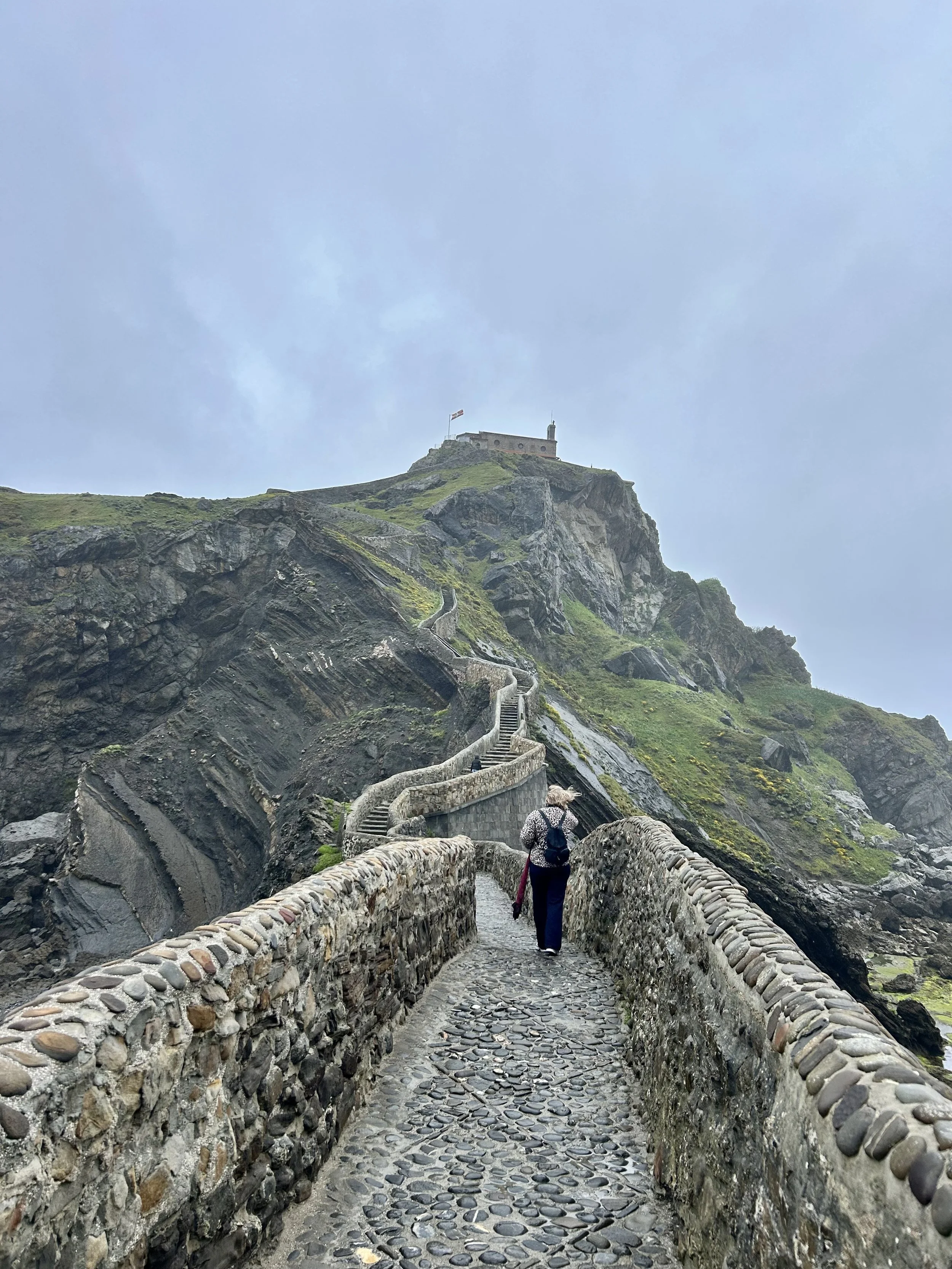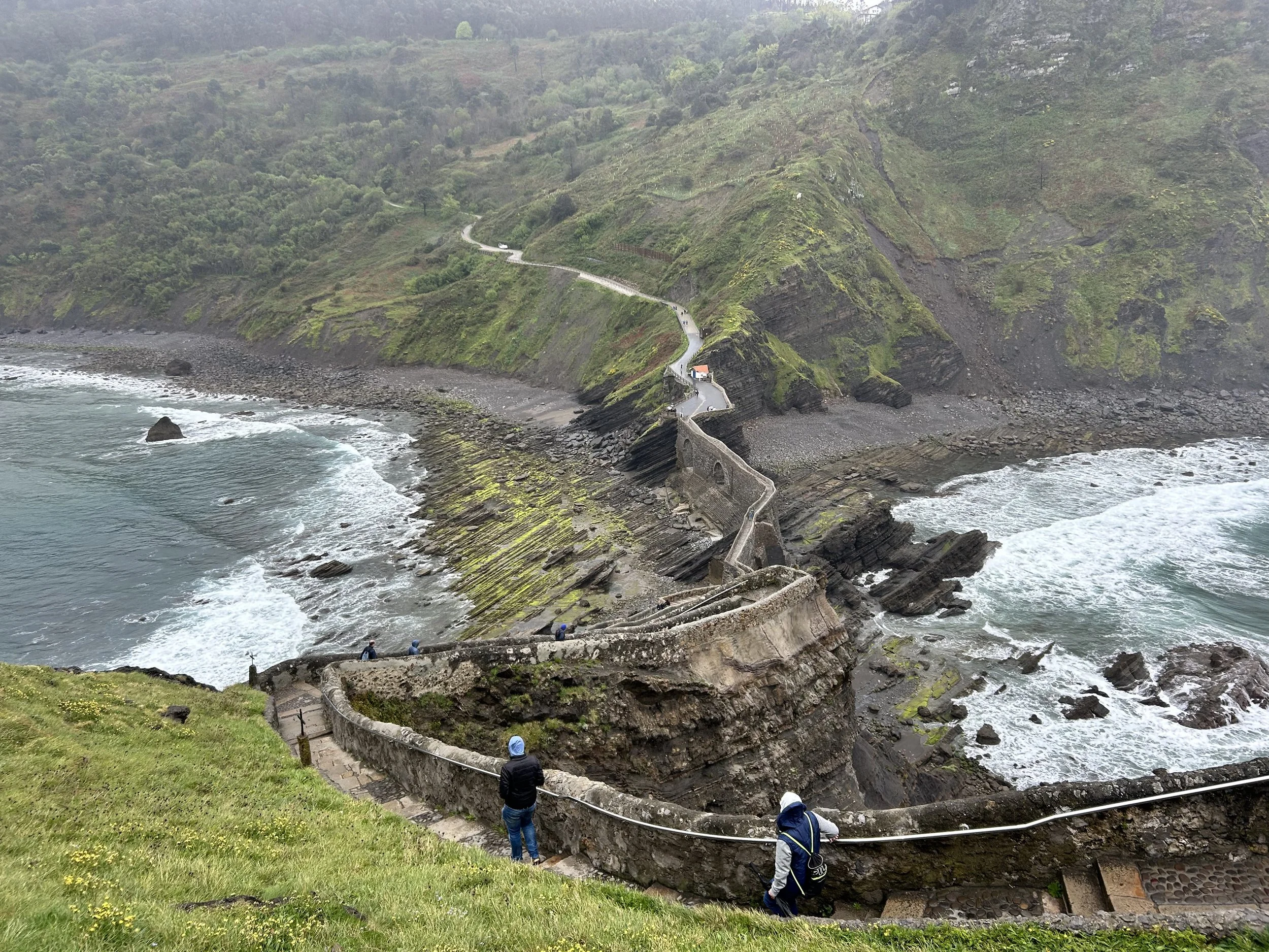 When I reached Gaztelugatxe, there was a 3km walk down to the staircase of 241 steps that lead up to the shrine for St. John. Admission was free, but all visitors had to enter through a ticket booth to avoid overcrowding. Because of the rain, there was almost no wait.