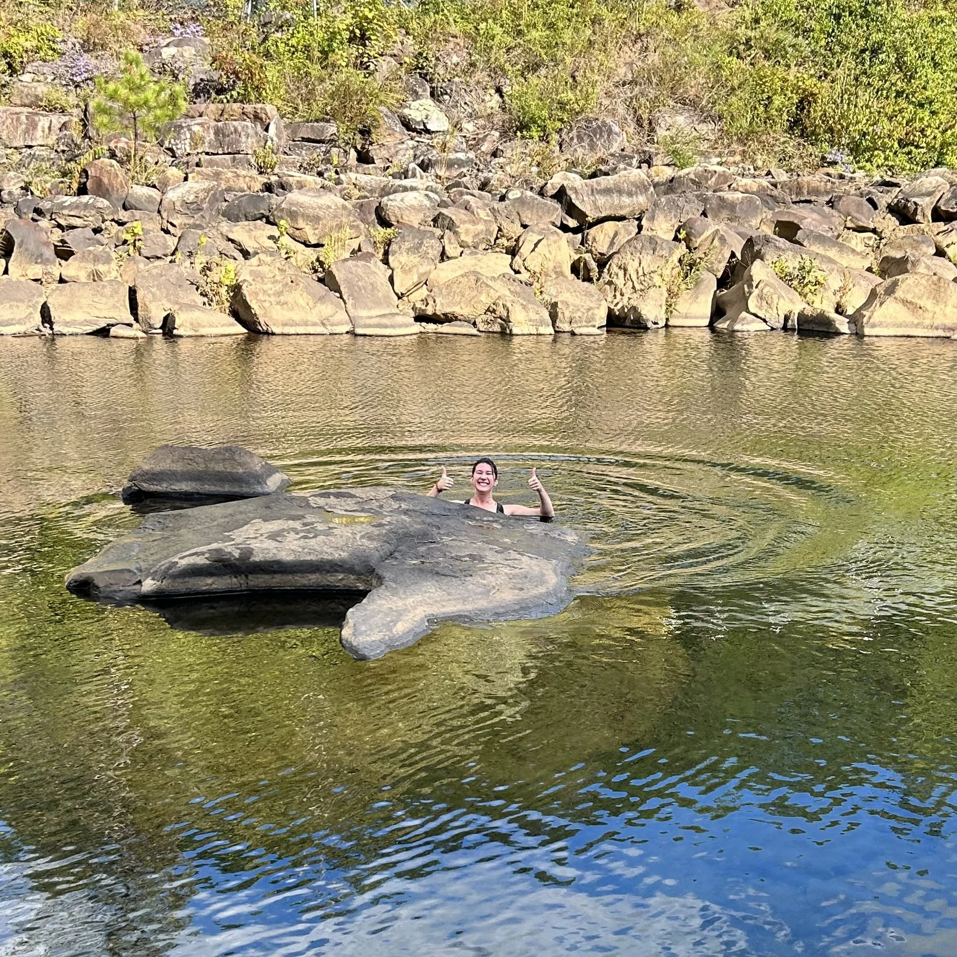David, the campsite owner, told us that we could swim in the blue hole. The water was gorgeous, so of course I got in! Andrew was a bit more hesitant, but eventually he came around.