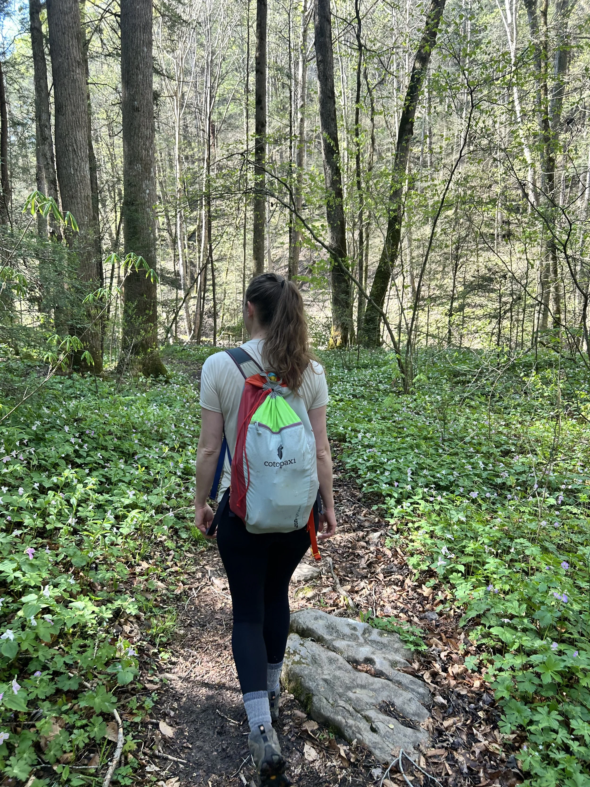 Here are a few photos from the Fiery Gizzard Trail, a 12.5 mile trail in South Cumberland State Park near Tracy City, Tennessee. My hiking buddy is a wood elf named Sarah Thomas, who is a seasoned naturalist and outdoorswoman. We hiked on April 12, 2025, a week before I left for Spain to hike the Camino del Norte. Over the eight-hour hike, we discovered new ways of saying “'wow” as we passed steep gorges, boulders, towering hemlock trees, and lush coves of trilliums.