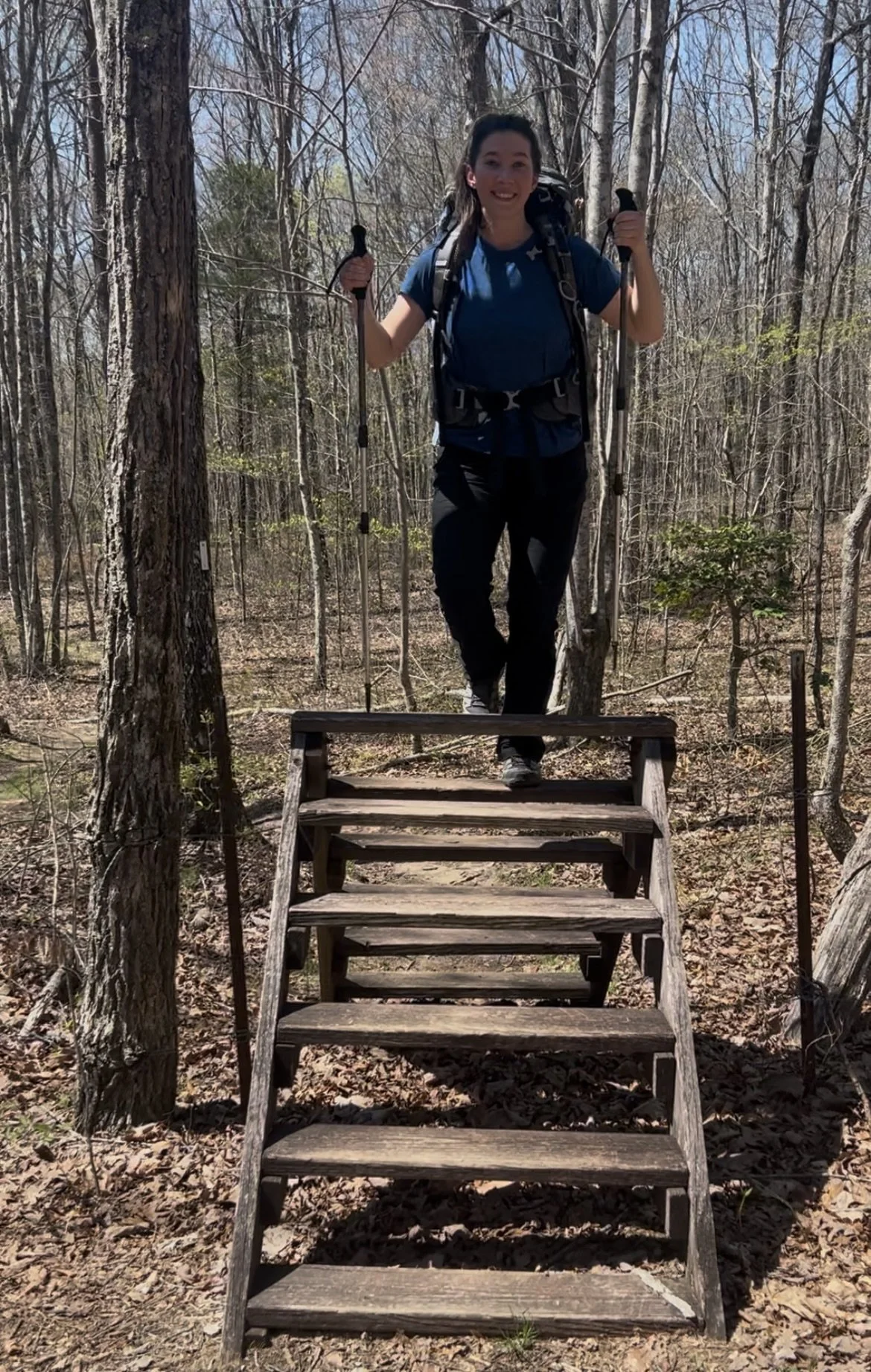 Me ascending and descending a bridge/ladder to cross a barbed wire fence near the end of the hike (hence the slightly crazed expression, ha!)